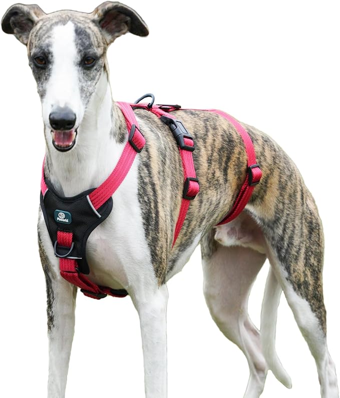 Efecto (Anti-Escape): Son esenciales para razas con cuerpos «de galgo» o perros extremadamente miedosos que tienen la habilidad de tirar hacia atrás para deslizarse y escapar de un arnés de dos puntos. La tercera correa evita que el arnés se deslice hacia arriba.